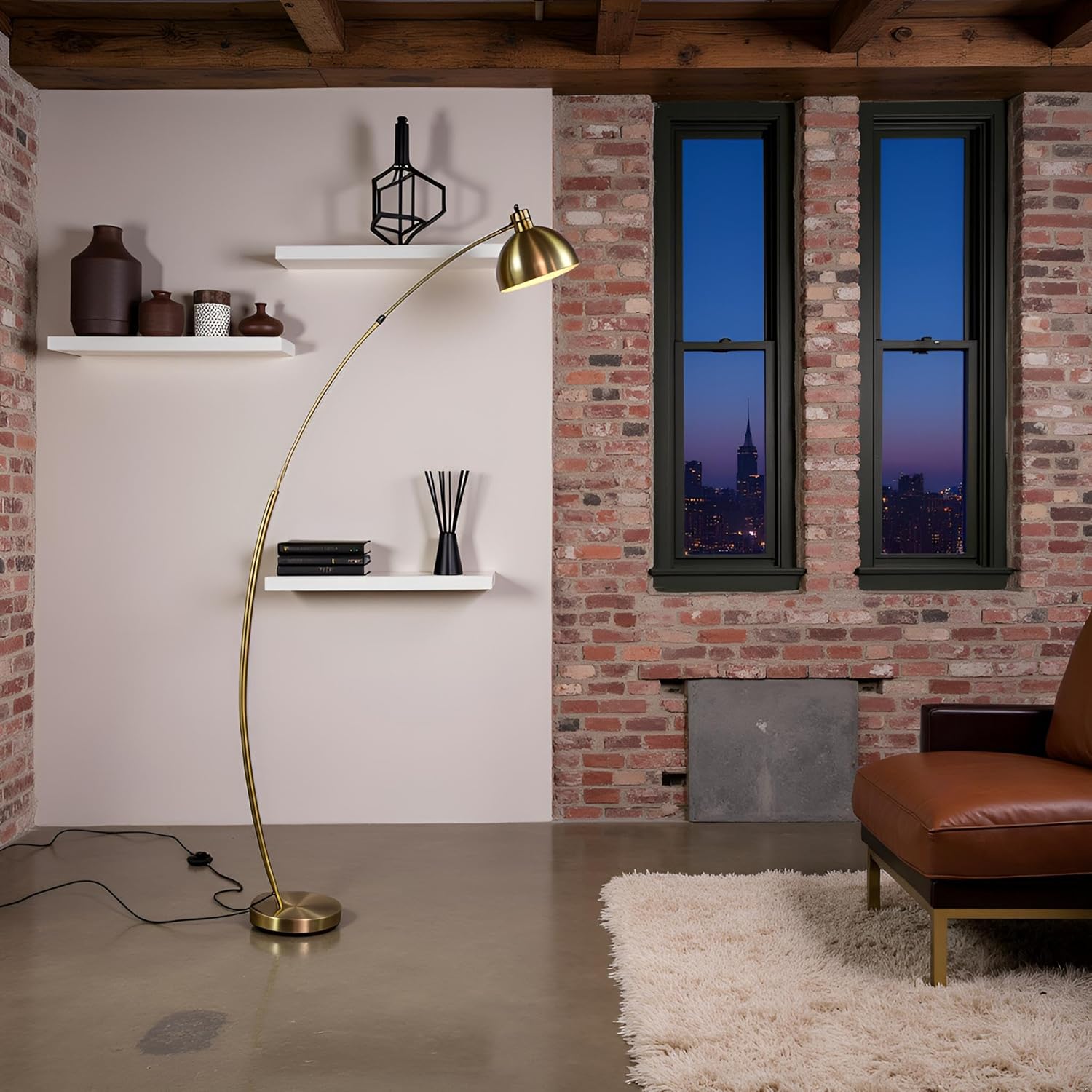 Modern & Stylish design: Floor lamp that features a gentle arc that carries the eye to the contemporary design, that exterior finish in antique brass, can make an impact in both modern and classic spaces. This antique brass floor lamp for a living room or bedroom, it can also welcome your guests in style in an entrance hall. The E27 socket has space for a lamp of your choice. Type E27 Bulb Holder (Bulb is not included).