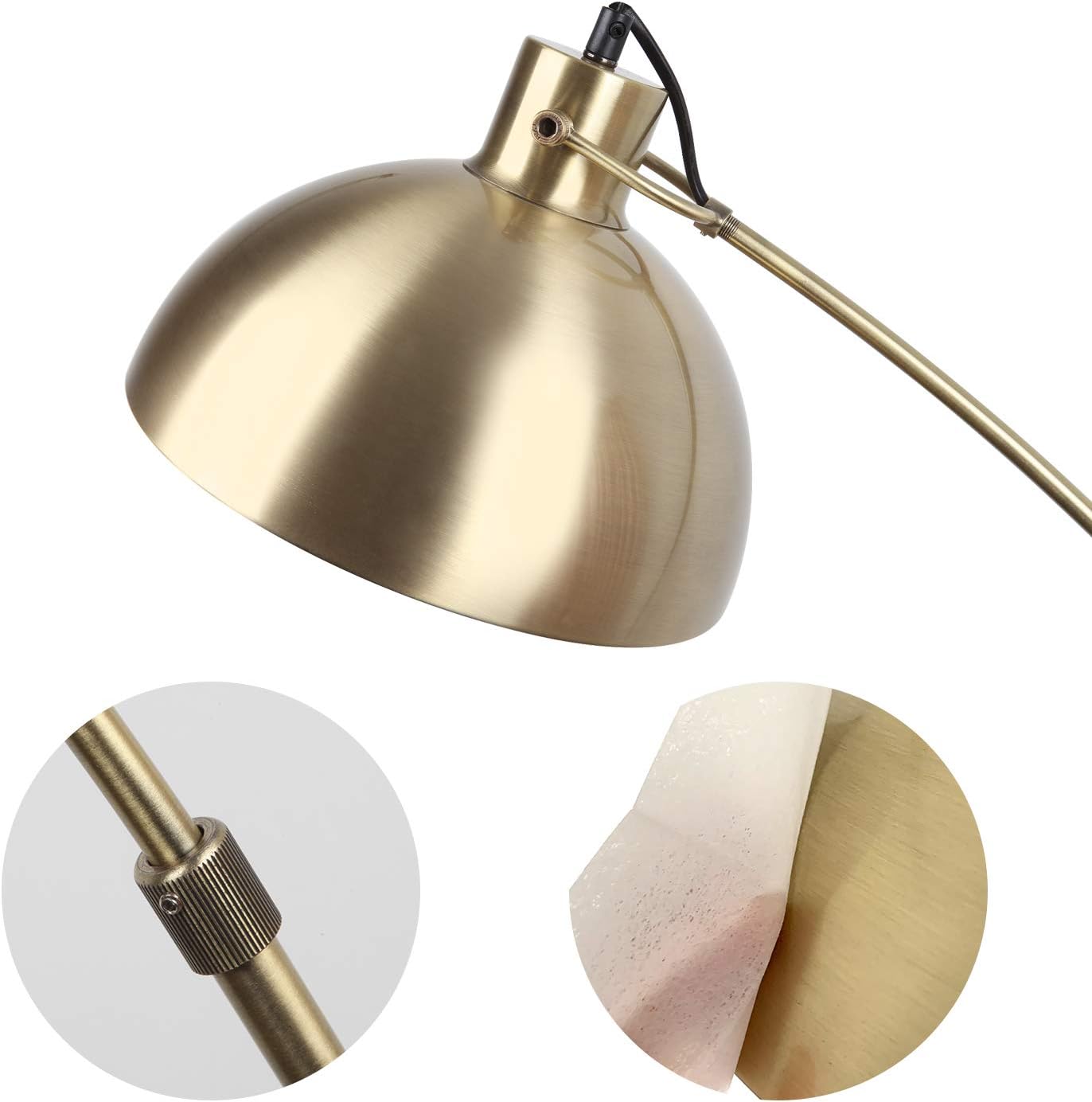 Arched-arco floor lamps Material: This high-quality arc floor lamp, made of the highest quality brass-colored metal material: stainless steel brushed arc, antique brass lampshade. This fixture stays strong from a stable base.