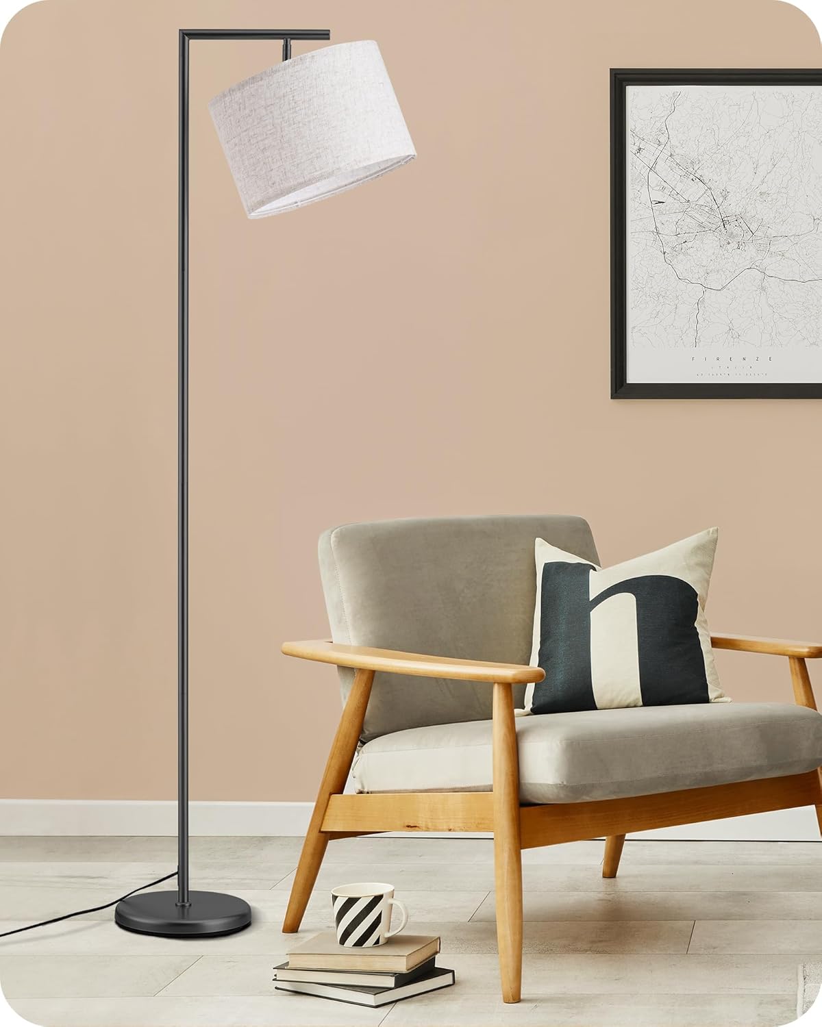 EDISHINE LED Floor Lamp, 63″ Standing Lamp with Adjustable Linen Shade, Black Metal Light Pole, Modern Floor Lamps for Living Room, Lounge, Foot-Switch Control, E27 Socket, UKCA Listed [Energy Class E]