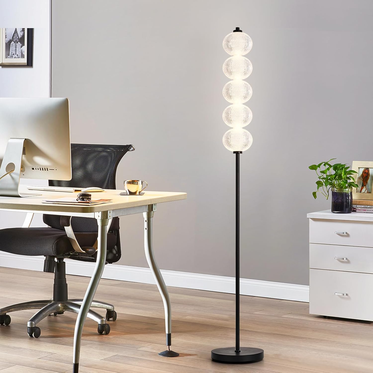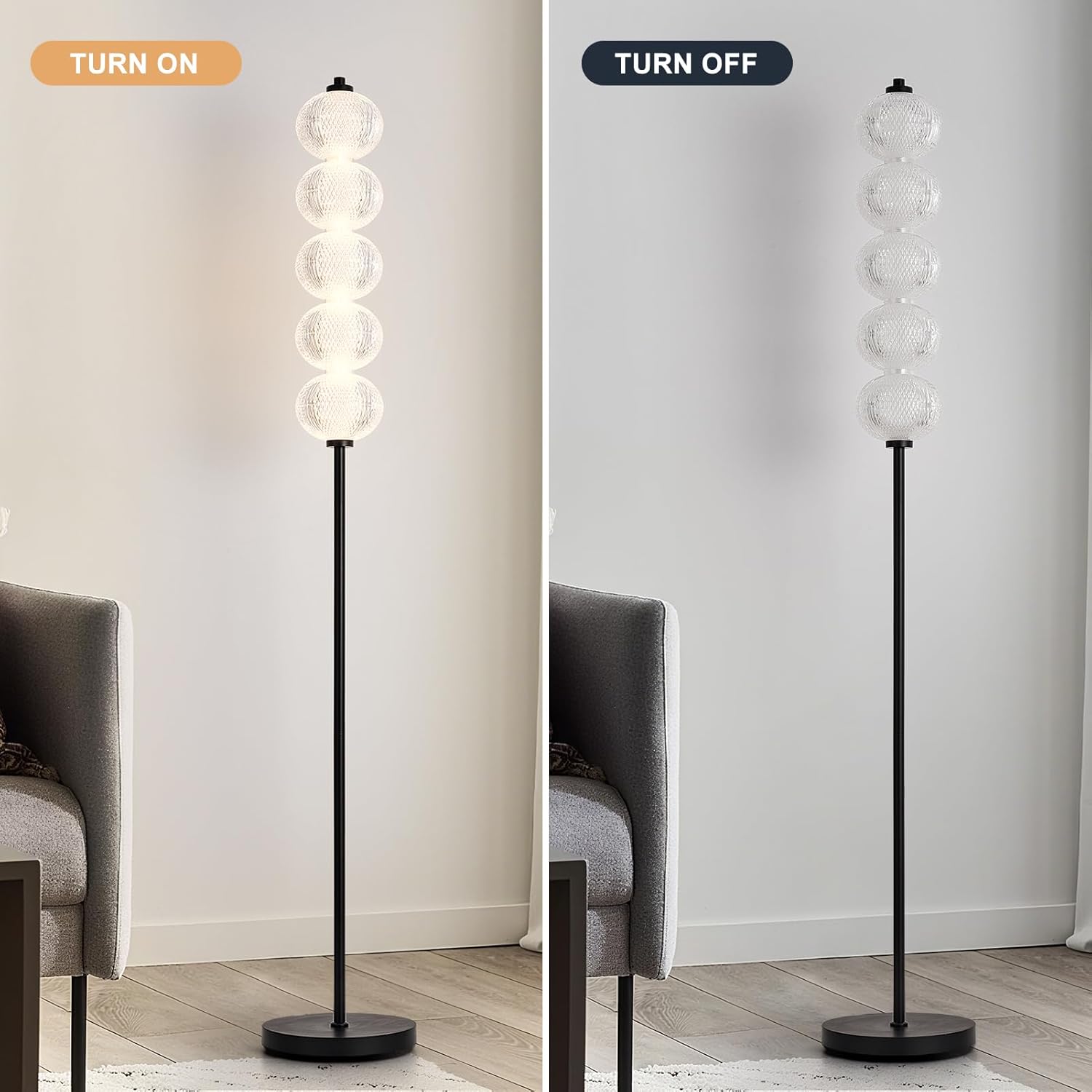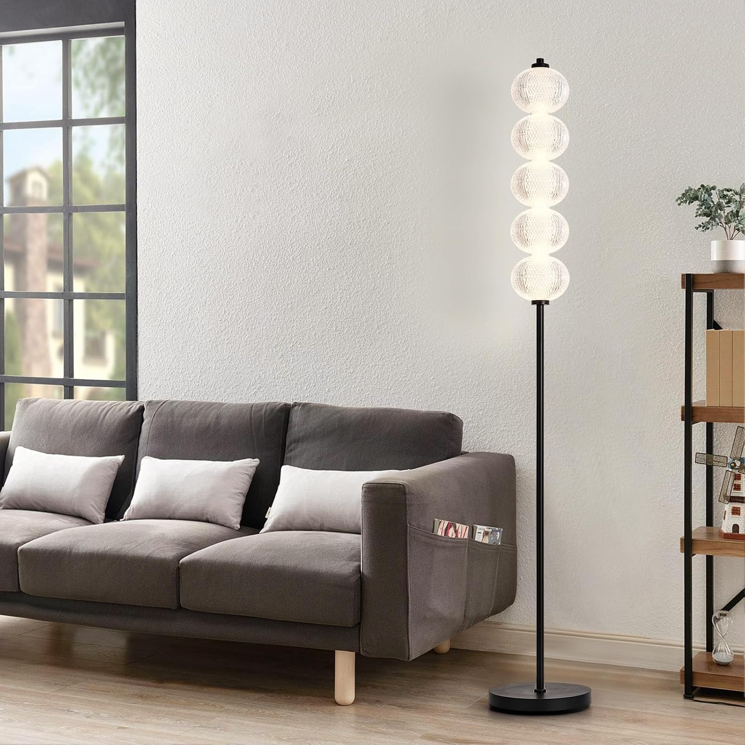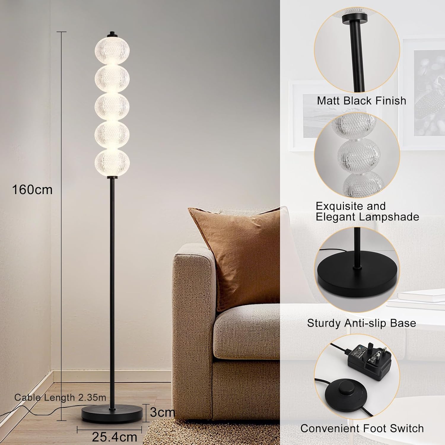 Versatile Placement – With its stylish black finish (25.4×25.4×160 cm) and 2.35 m cable, this lamp fits perfectly in living rooms, bedrooms or home offices, blending modern aesthetics with practical functionality.