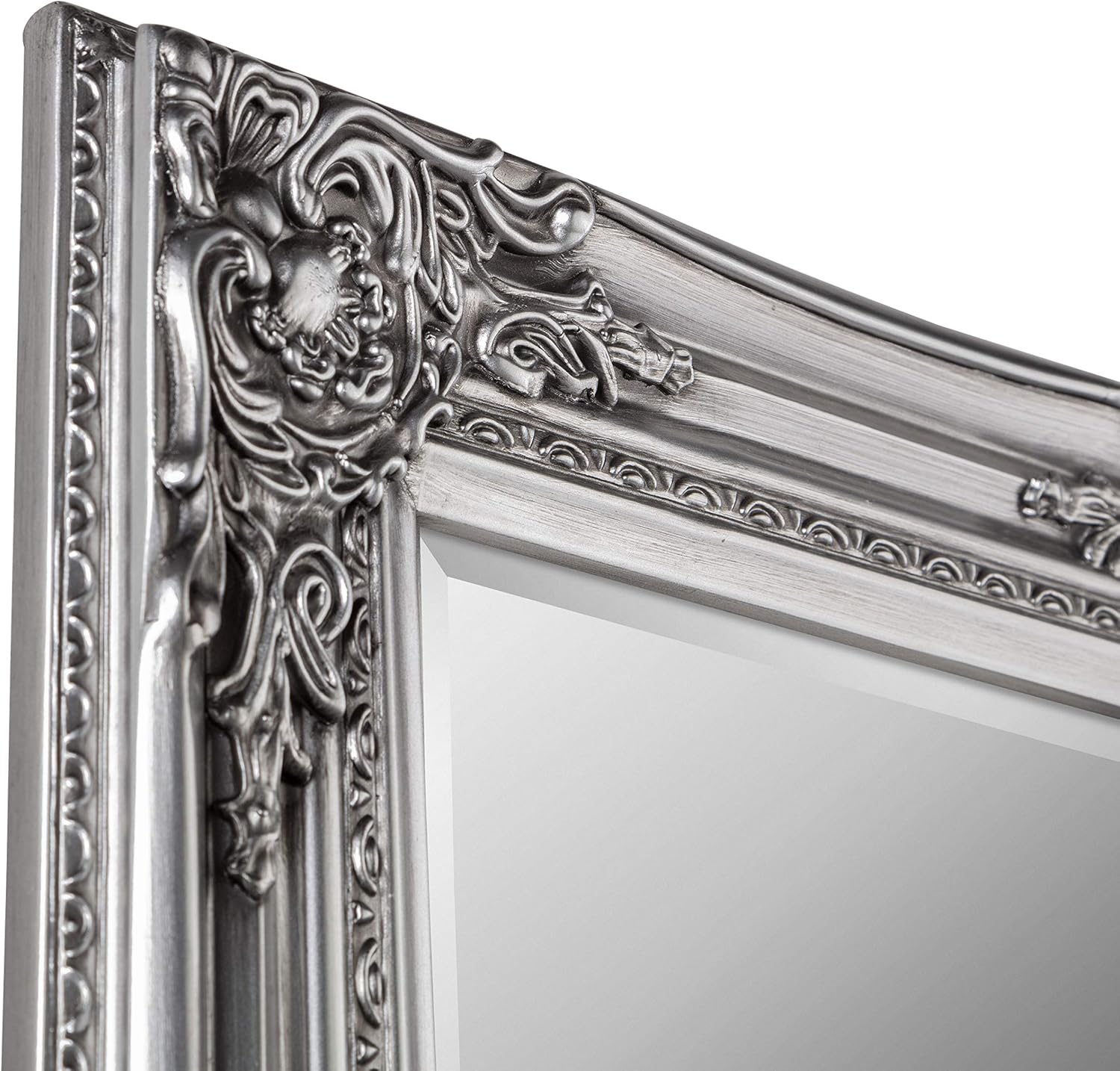 The subtle metallic tone allows the mirror to complement a wide range of colour schemes, from soft neutrals to deeper, dramatic hues. The decorative moulding around the frame provides texture and dimension, transforming the mirror into more than just a reflective surface — it becomes a focal point within your décor.