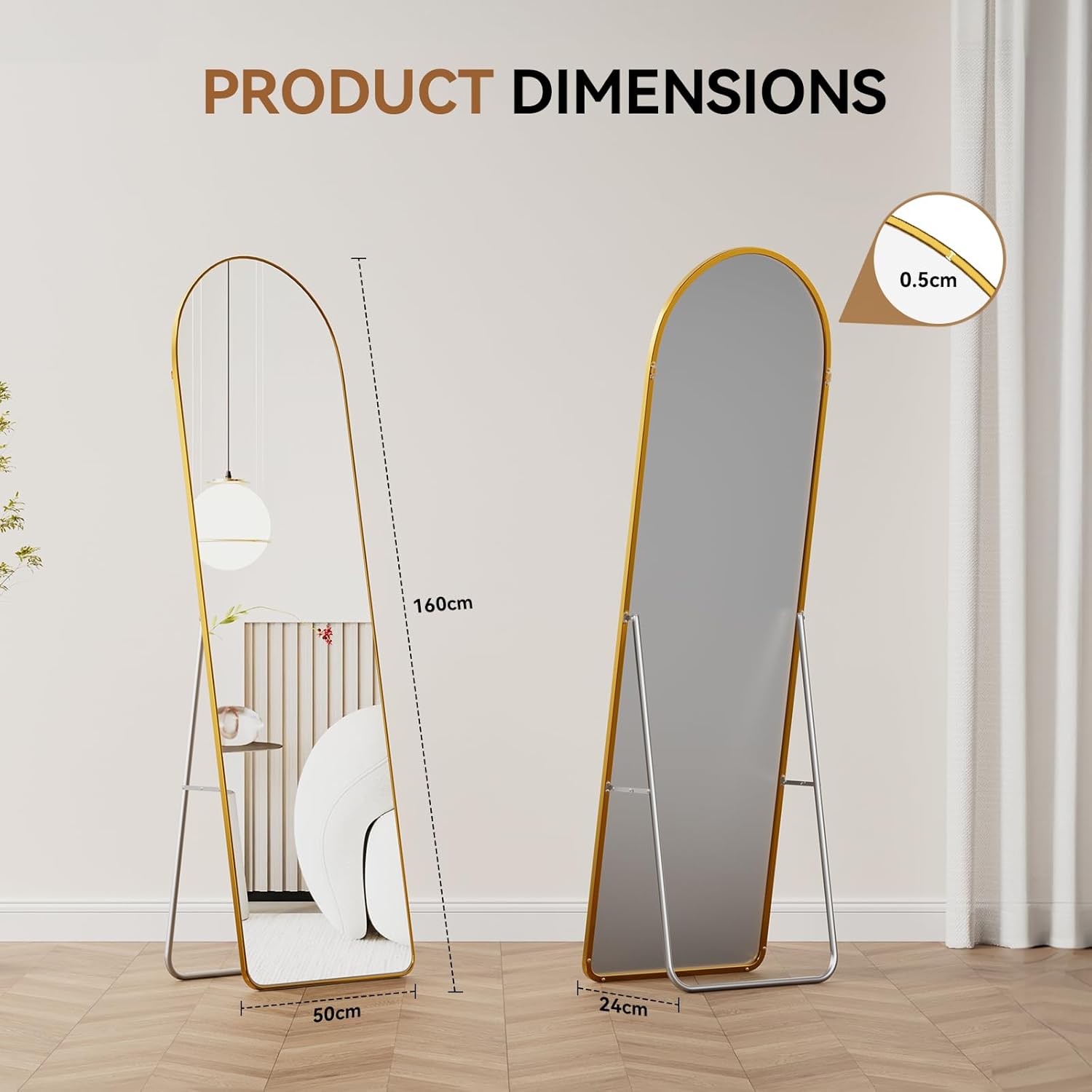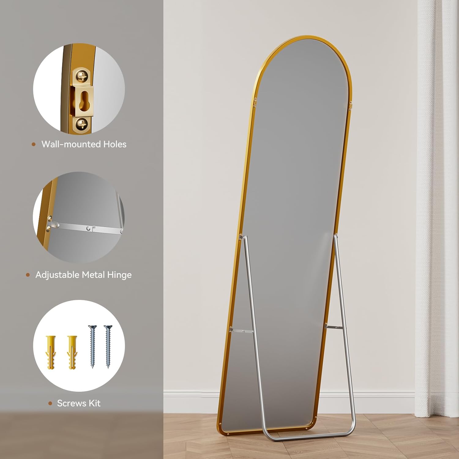 Its full body dimensions make it ideal for outfit coordination and styling, while its elegant arched frame enhances the overall atmosphere of your space.