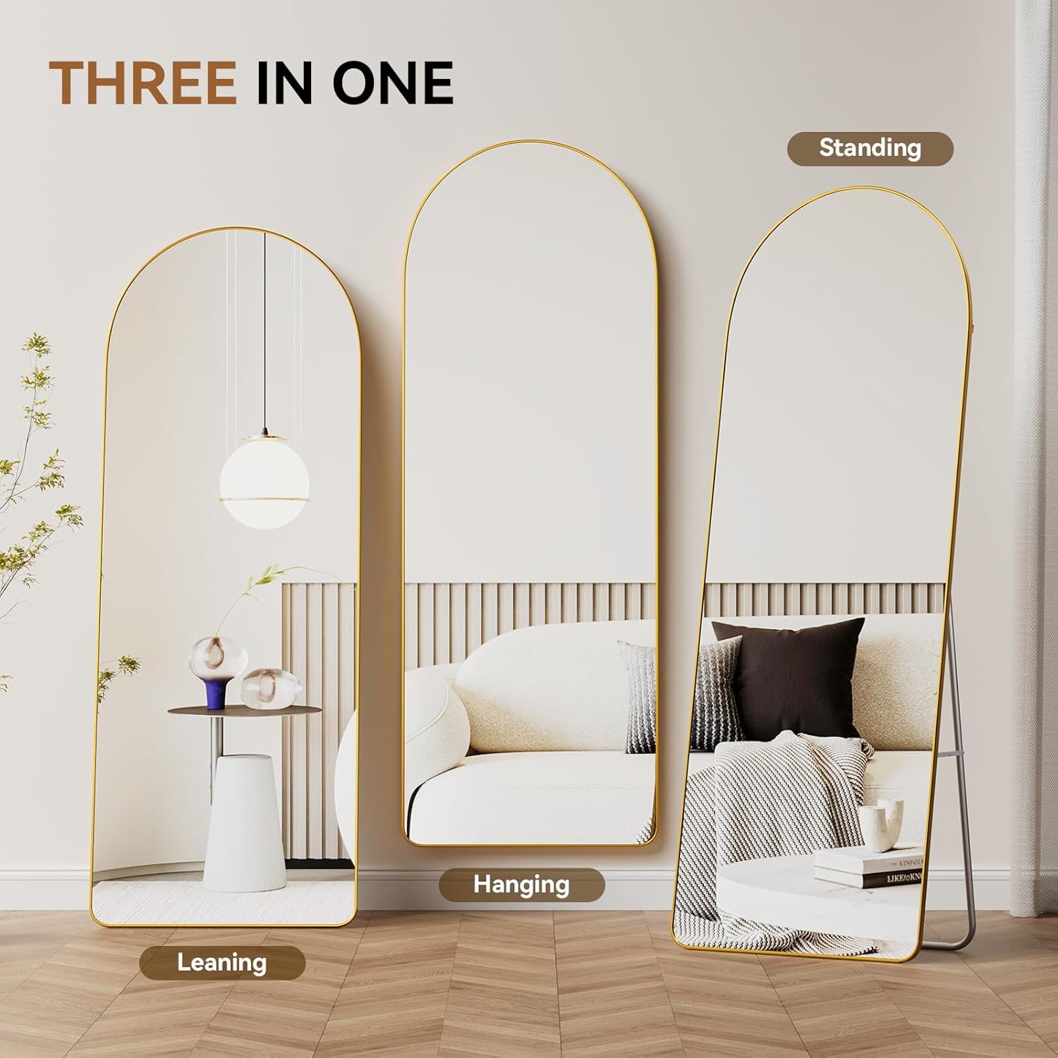 Designed for maximum versatility, this full body mirror offers three convenient installation methods to suit your space and styling preferences: