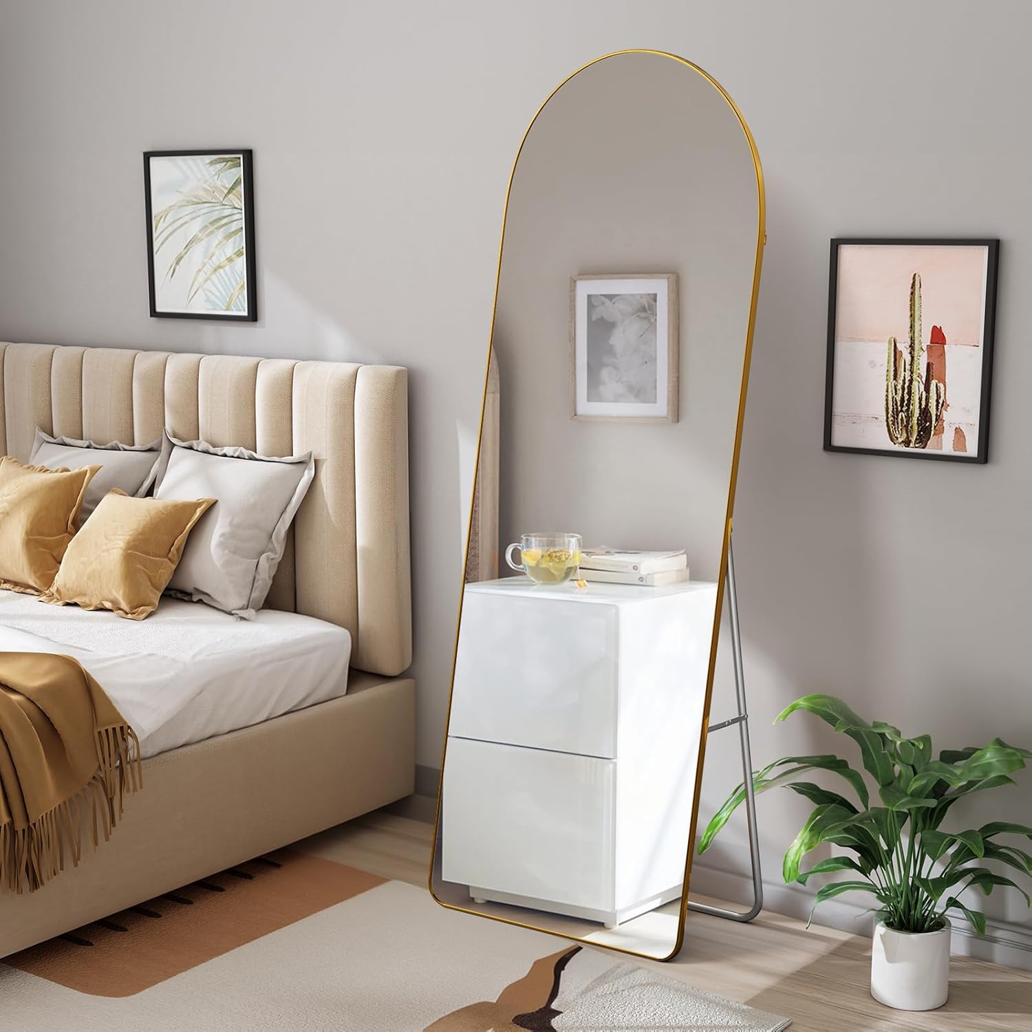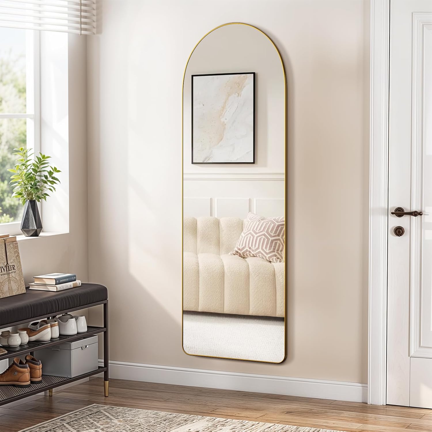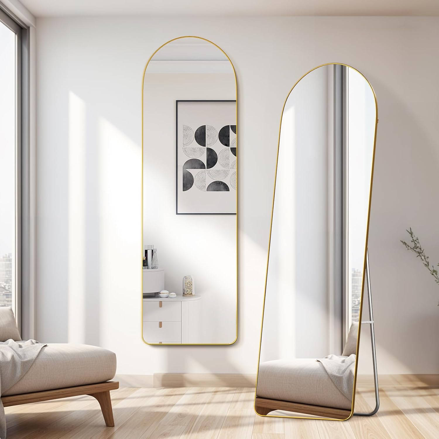 Featuring a premium arched-top frame, this full-length mirror delivers a soft, architectural look that instantly elevates your space. The curved top introduces a graceful design element, breaking away from harsh straight lines while maintaining a clean and modern aesthetic.